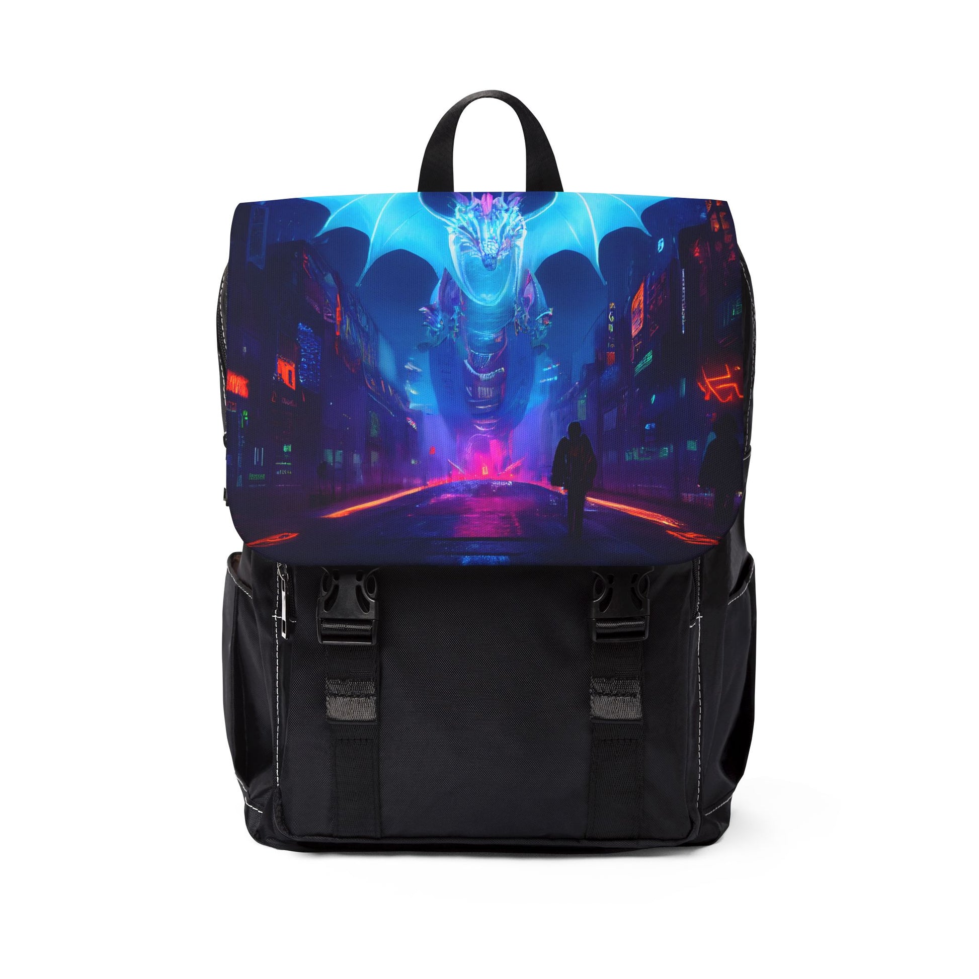 Elevate your everyday carry with the Neon Cyber Dragon Shoulder Backpack, where practicality meets modern design.